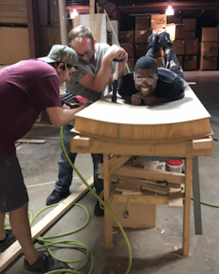 This is accomplished with CAD/CAM and running a CNC, then applying our proprietary construction process to the walls. For tighter radii we had to improvise – which was pretty funny – nothing like laying down on the job, literally!